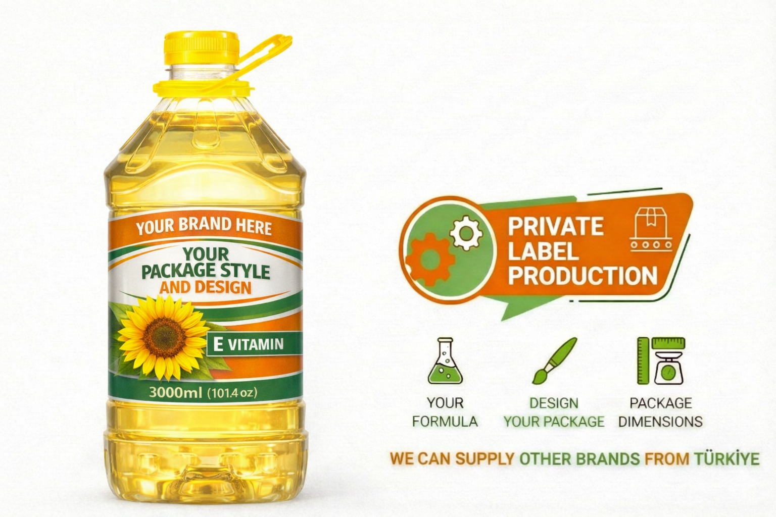 Private Label and OEM: When you wish to take your place in the market with your own brand, we coordinate the entire process—from label design to bottle weight (grammage)—acting as your operational office in Türkiye.