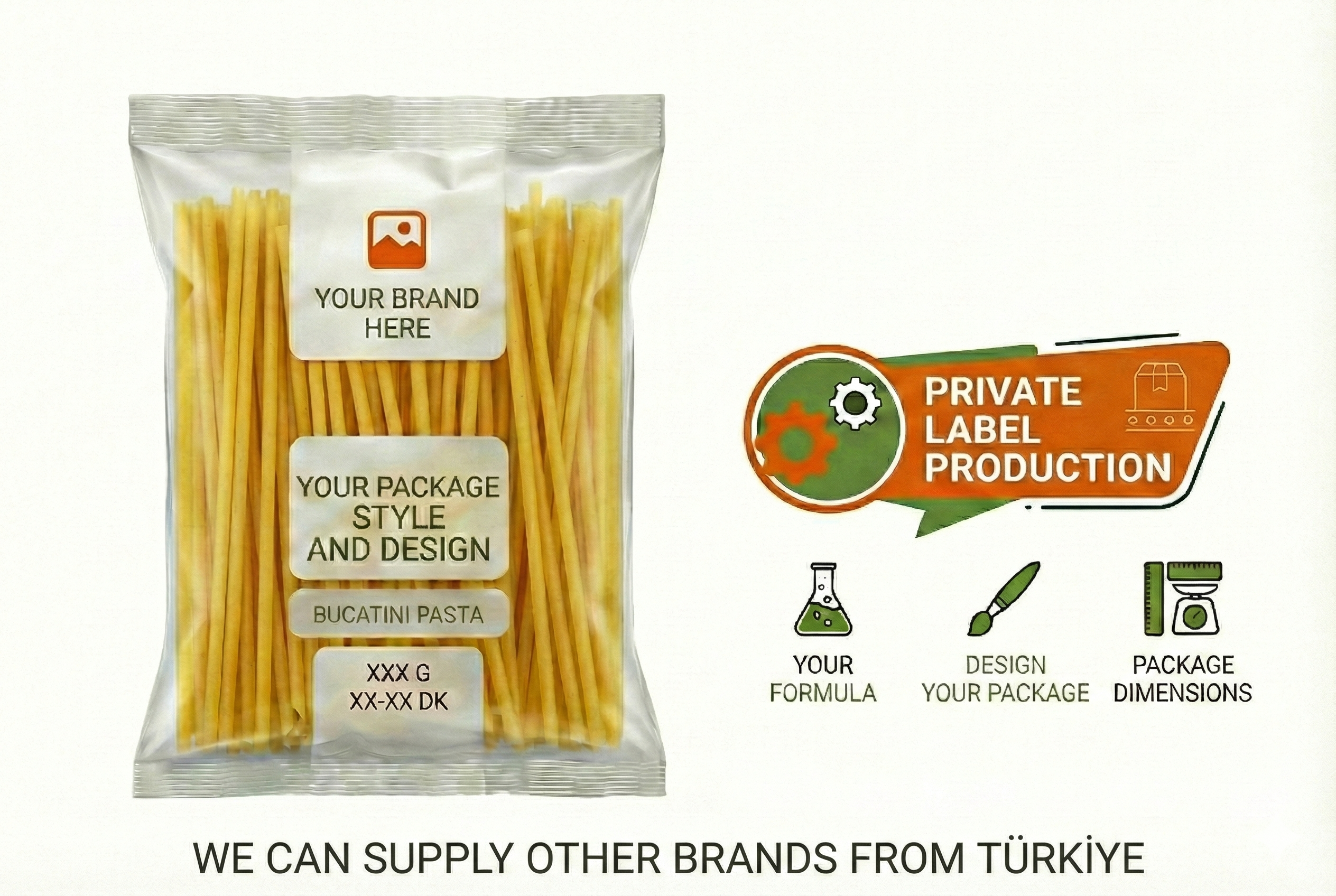 Toptan Bucatini makarna, private label ve OEM üretim seçenekleri sayesinde ithalatçılar, toptancılar ve distribütörler için esnek ve ölçeklenebilir çözümler sunulur. 200 gr, 250 gr, 300 gr, 350 gr, 400 gr, 450 gr, 500 gr ve 5 kg paket ölçüleri mevcuttur. Farklı ölçü ve ambalaj talepleri için bizimle iletişime geçebilirsiniz. Palet bazlı sevkiyat, karma konteyner yükleme ve rekabetçi fiyat avantajları ile lojistik maliyetler optimize edilir.